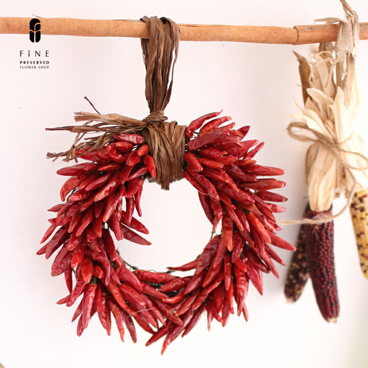 楽天市場 季節の花 春リース 飾り 壁掛け プリザーブドフラワー ギフト レッドペッパーリース 15時迄のご注文であす楽 送料無料 トウガラシ インテリア 店舗 装飾 とうがらし 魔除け 有料バッグ リースm対応 プリザーブドフラワーfine
